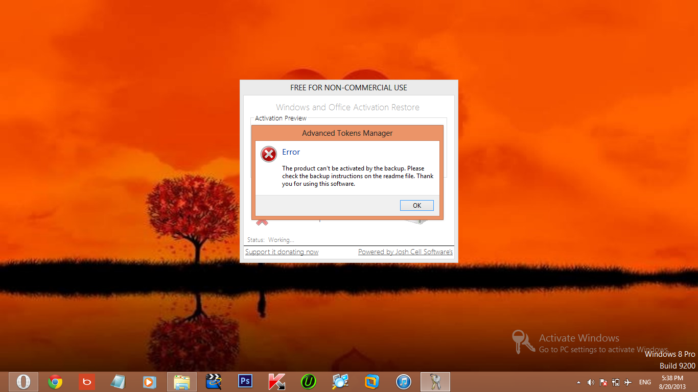 Khôi phục (Restore): Chạy lại Advanced Tokens Manager. Lần này, bạn sẽ thấy nút “Restore Activation”. Nhấp vào nút này để bắt đầu quá trình khôi phục thông tin kích hoạt từ tập tin sao lưu đã tạo trước đó. Phần mềm sẽ yêu cầu xác nhận, bạn nhấn “Yes” để tiếp tục. Sau khi hoàn tất, một thông báo xác nhận sẽ hiện ra.
