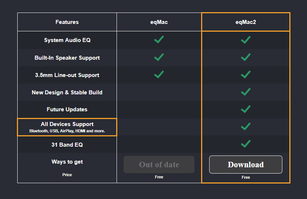 The software’s versatility extends to its compatibility with a wide array of audio output devices. This includes built-in speakers, the standard 3.5mm headphone jack, as well as Bluetooth devices, USB audio interfaces, HDMI audio, and AirPlay compatible devices. This broad range of support ensures that users with a diverse setup of audio peripherals can benefit from eqMac2’s equalizing capabilities, regardless of whether they are using wired or wireless connections. This wide compatibility is a major strength, simplifying the audio enhancement process for users with various output methods.