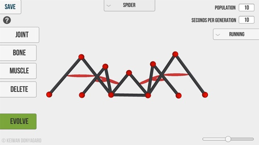 Evolution is a unique creature-creation simulation software developed by Keiwan Donyagard. Unlike many commercially released games, Evolution functions more as an experimental simulator, reminiscent of aspects found in the Spore series, but with a far more simplified and focused approach. The core mechanic revolves around building basic creatures using a limited set of components: joints, bones, and muscles. The user’s task is to design creatures capable of navigating a simple environment, overcoming obstacles by running, jumping, and climbing.