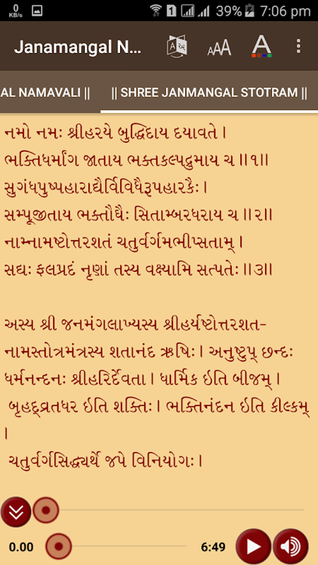 Portability: The app allows users to carry the Janmangal Namavali & Stotram with them wherever they go, making it easily accessible for daily recitation and reflection. This portability significantly enhances the opportunity for consistent spiritual engagement.