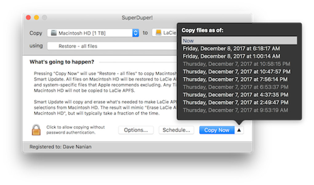 SuperDuper! for Mac offers a streamlined and user-friendly approach to backup and recovery. Its simple interface, coupled with powerful features, makes it accessible to users of all technical skill levels. The program guides users through the backup process, providing clear instructions and helpful tips. The ability to schedule backups eliminates the need for manual intervention, ensuring that backups are consistently performed and the system remains protected. The Smart Update functionality further optimizes the process by only backing up changed files, conserving storage space and reducing backup time.