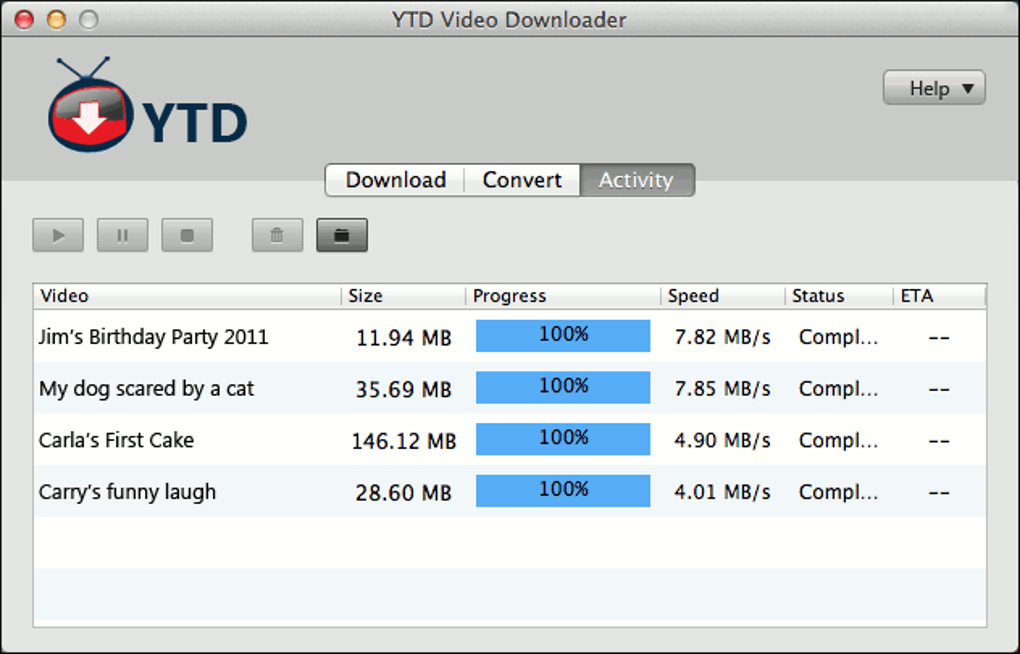 Beyond monitoring, the “Activity” tab also facilitates convenient post-download actions. Users can directly play back downloaded videos using YTD’s integrated media player or open them with their system’s default player. A practical right-click context menu offers quick access to essential file management options such as deleting files, stopping/pausing active downloads, and renaming videos. This comprehensive control within a unified interface significantly enhances productivity, transforming YTD for Mac into a complete solution for both acquiring and managing video content.