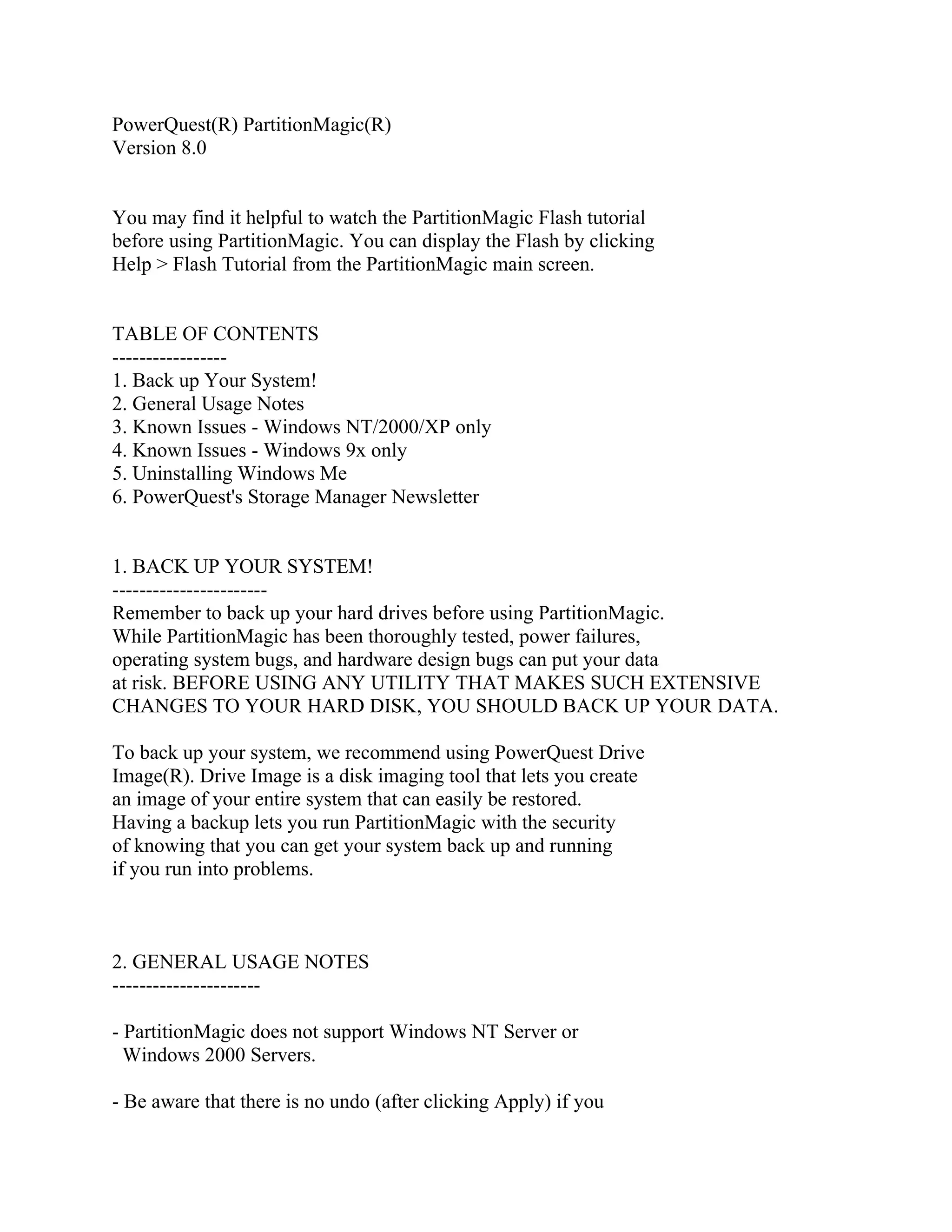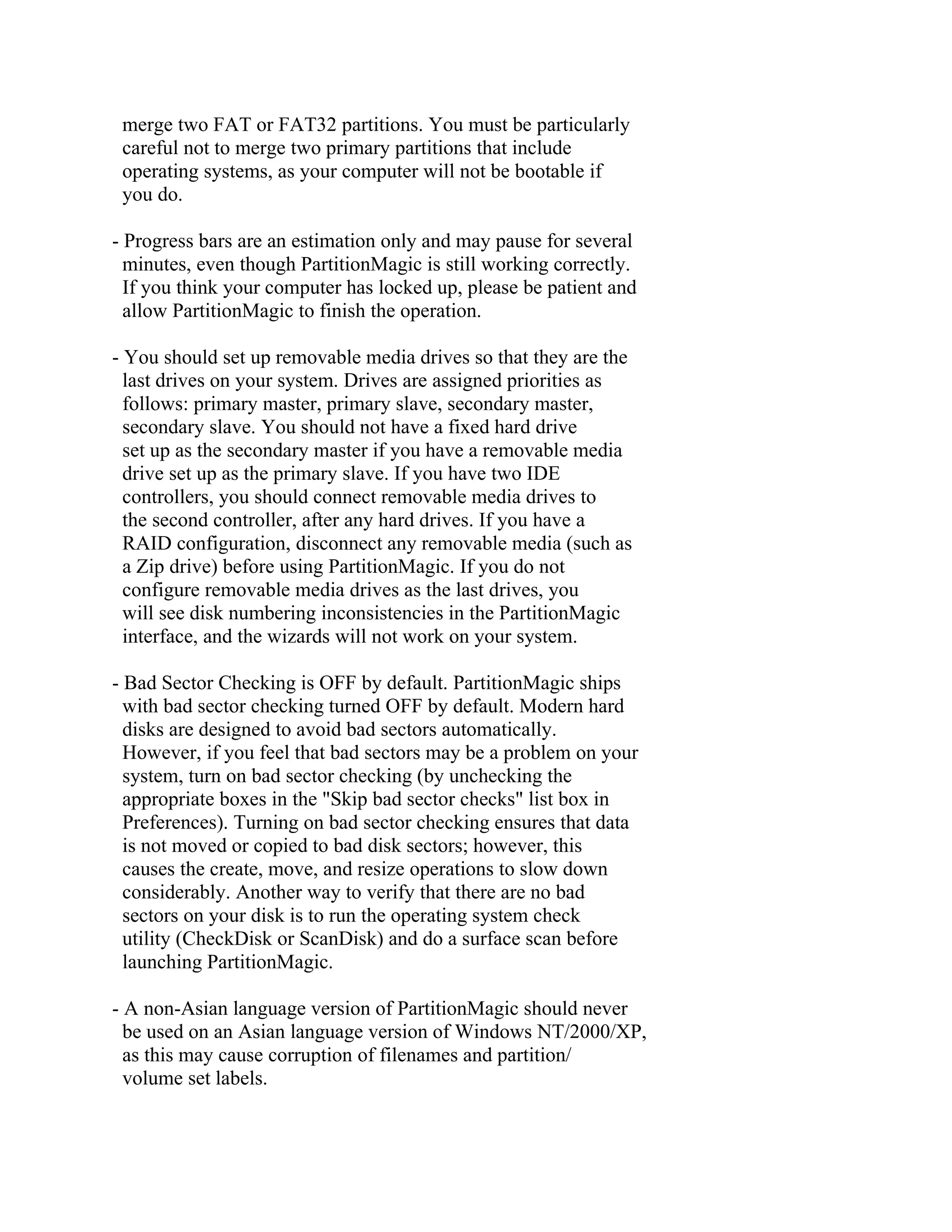 Hạn chế của Norton PartitionMagic 8.05: